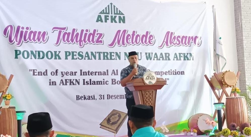 Ustaz Aslan memberikan motivasi saat pembukaan Ujian Tahfidz Metode Askara Pondok Pesantren Nuu Waar, Selasa (31/12/2024).