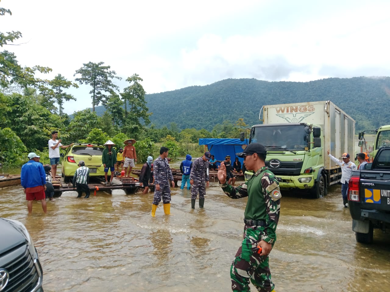 “Untuk sementara penyebrangan mengunakan perahu rakit dan bantuan spead Boat dari BPBD agar memperlancar penyebrangan kendaraan roda dua maupun roda empat dan masyarakat,” ujarnya.