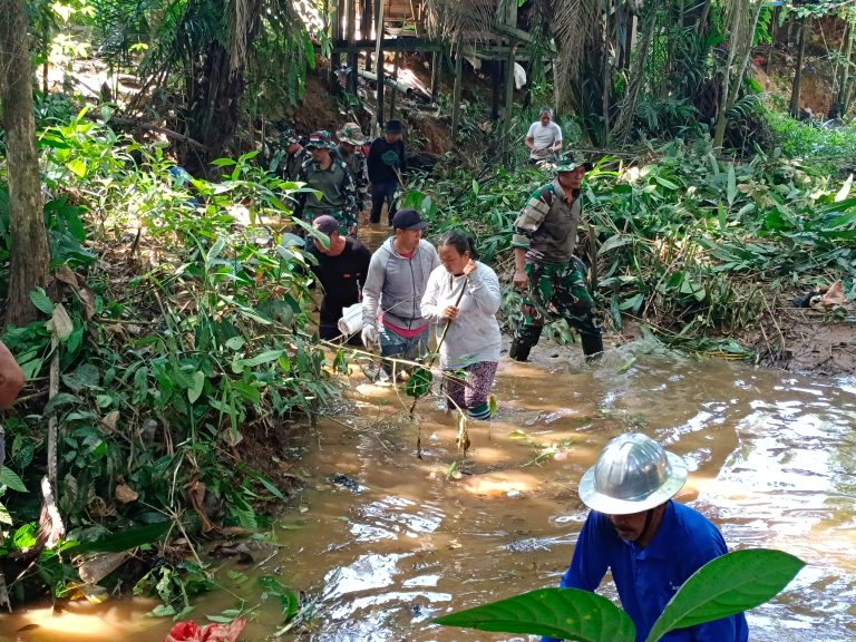 Aksi Bersih Sungai, Bersama Satgas Yonzipur 5/ABW Wujudkan Lingkungan Bebas Dari Sampah dan Banjir