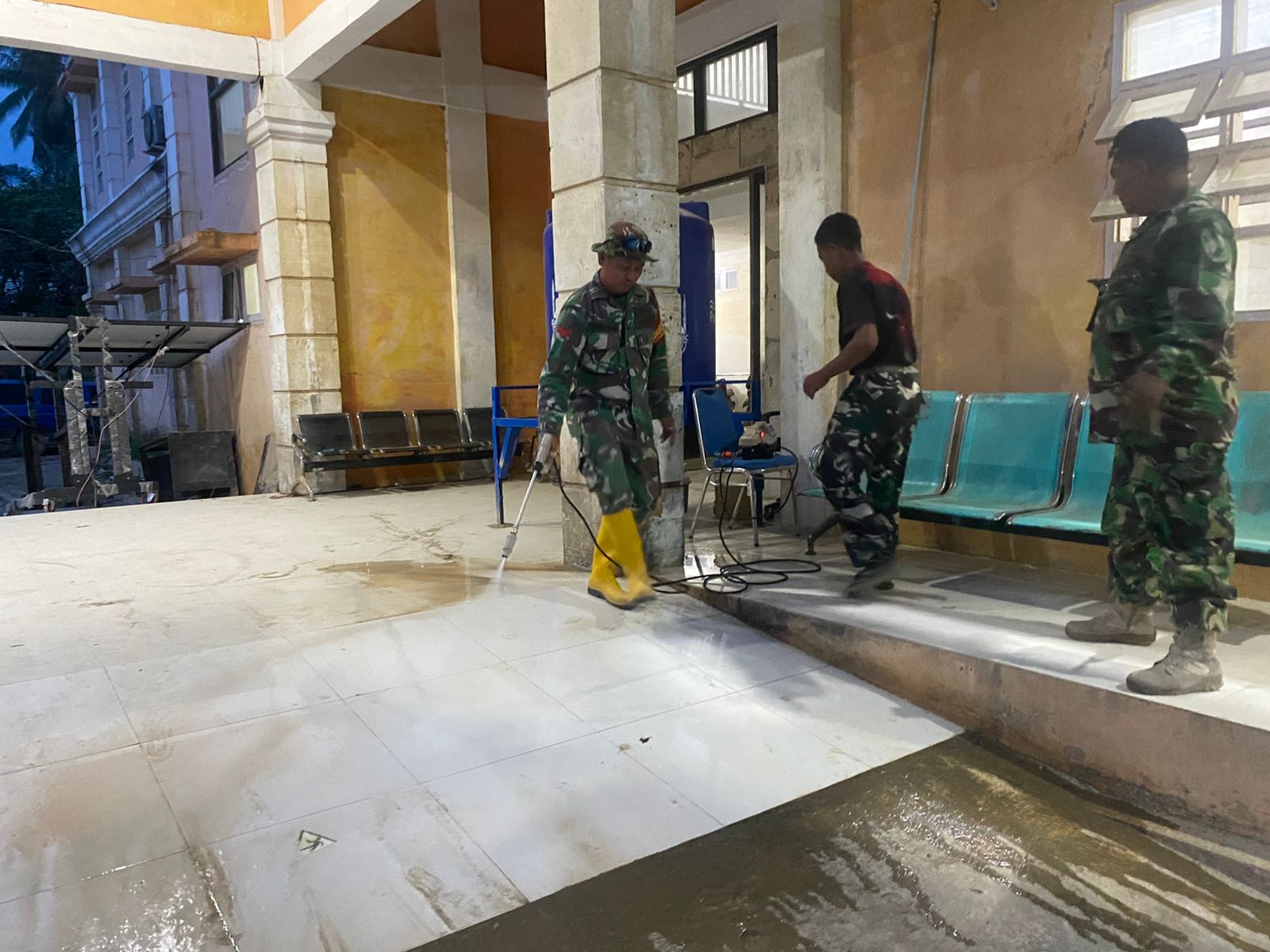 Personel Koramil 29/Langkahan bergerak cepat melaksanakan pembersihan sisa lumpur yang mengendap di lingkungan Puskesmas Langkahan, Kecamatan Langkahan, Kabupaten Aceh Utara. Kegiatan ini merupakan bagian dari upaya pemulihan fasilitas pelayanan kesehatan pasca peristiwa luapan air yang menyebabkan banjir bandang. Jumat (23/1/2926).