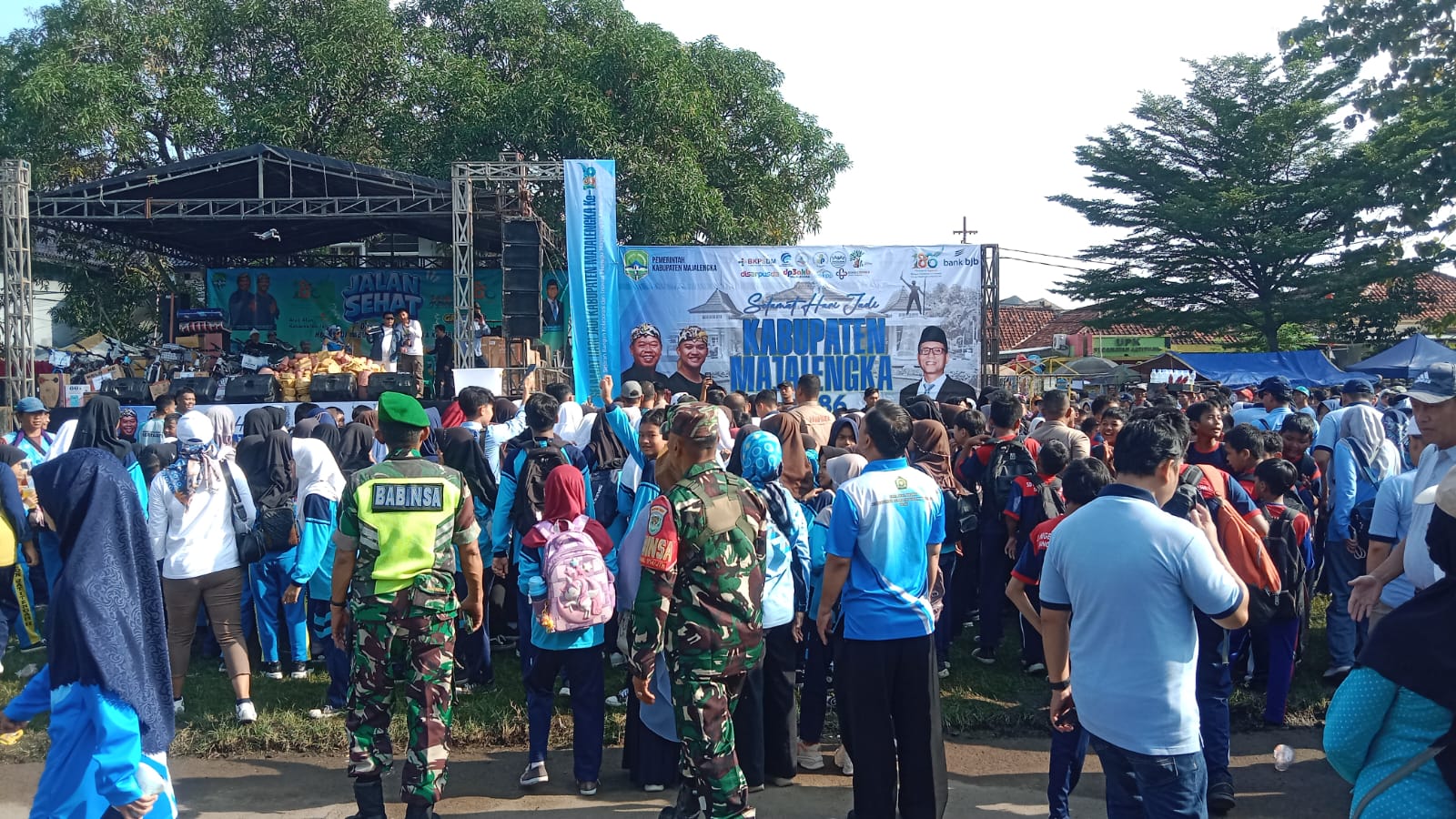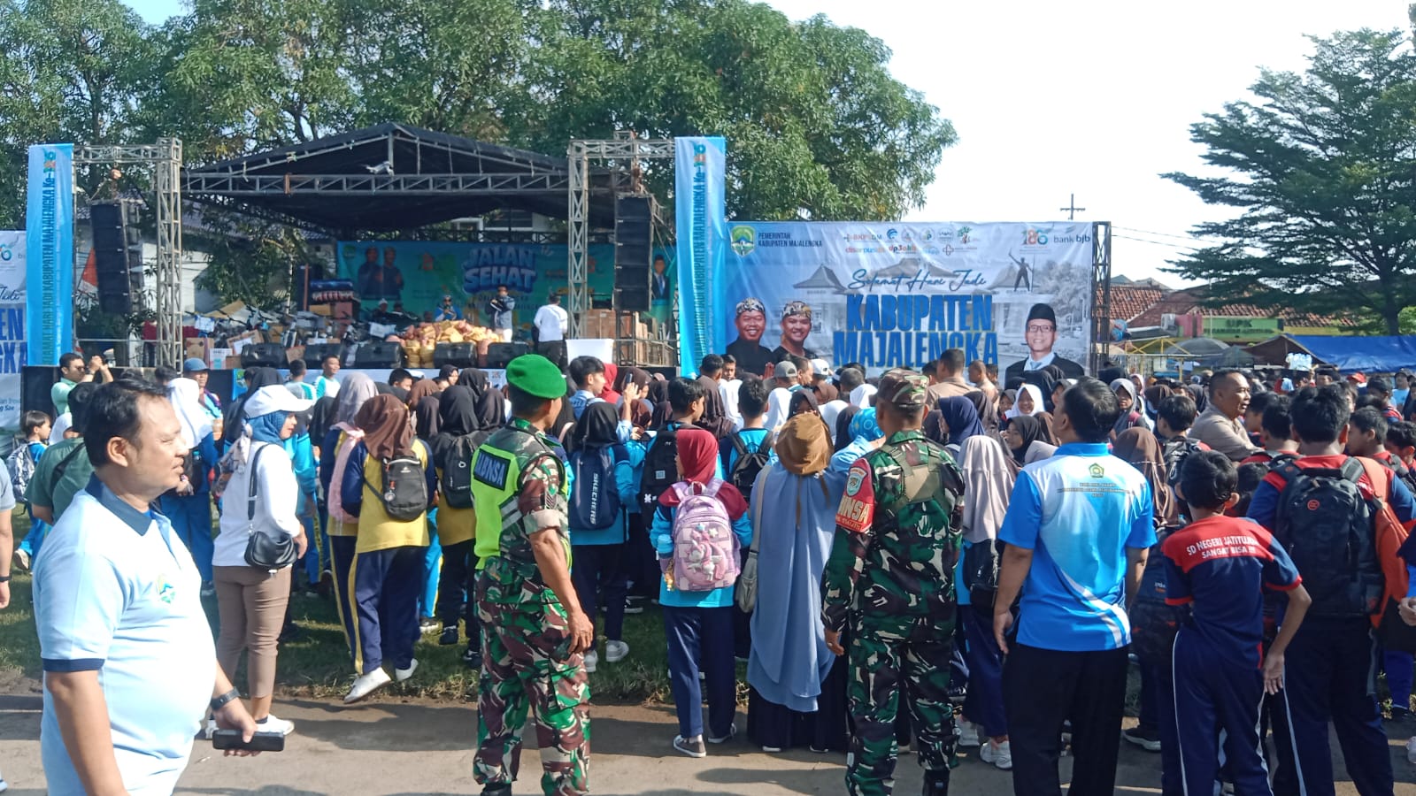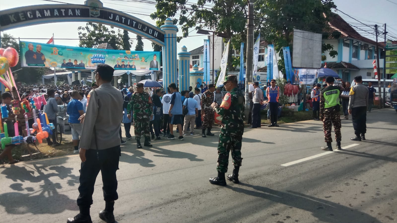 Anggota Koramil 1714/Jatitujuh Kodim 0617/Majalengka turut menghadiri dan mendukung pelaksanaan kegiatan Gerak Jalan Santai dalam rangka rangkaian Hari Ulang Tahun (HUT) Kabupaten Majalengka ke-186 Wilayah Utara, yang digelar di Alun-alun Kecamatan Jatitujuh, Selasa (03/02/2026).