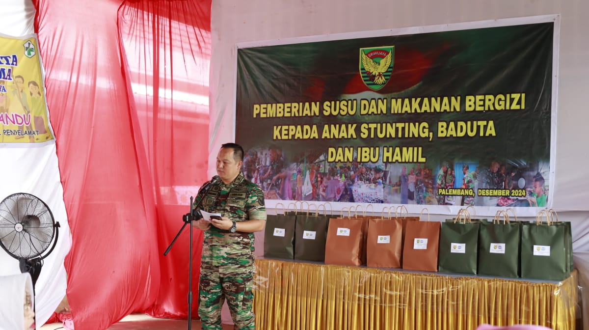 “Kodim 0418/Palembang berkomitmen untuk mendukung penuh upaya pemerintah dalam mengatasi masalah stunting dan kesehatan ibu hamil. Salah satu langkah konkret yang kami lakukan adalah dengan memberikan makanan bergizi bagi mereka yang membutuhkan, agar mereka tumbuh dengan sehat dan kuat.,”ucapnya