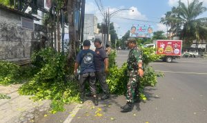 Untuk itu, Babinsa bersama Linmas dan petugas kebersihan serta warga melaksanakan kerja bakti dengan bergotong-royong melaksanakan pembersihan dan pemangkasan dahan selain itu dirinya juga berpesan kepada warga rutin melakukan kegiatan kerja bakti