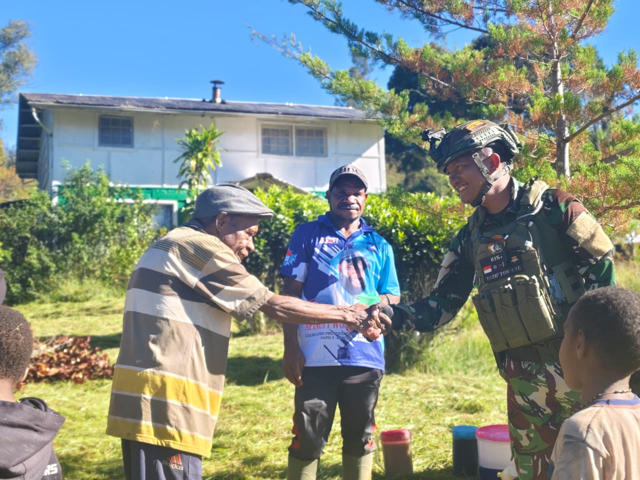 Bakti Sahabat di Bumi Cendrawasih: Satgas Yonif 700/Wyc Beri Senyum lehat untuk Sang Bapa Gereja Eromaga