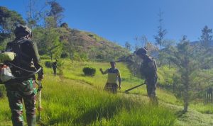 Dengan semangat Bhakti yang menggelora, para prajurit pengabdi ini melaksanakan kegiatan Binter terbatas, menyasar sebuah lokasi yang penuh makna: halaman rumah Bapak Marianus Murib, sang Ketua Missionaris Gereja di Kampung Eromaga, (30 September 2025). Sebuah karya bakti yang sederhana, namun sarat dengan pesan perdamaian dan persaudaraan.