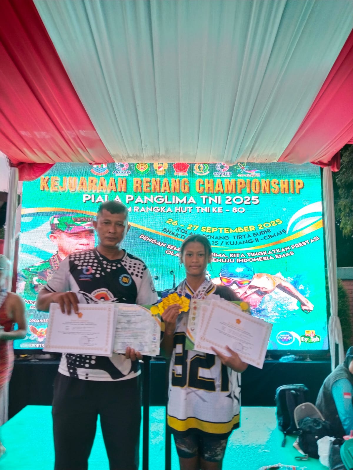 Prestasi membanggakan kembali diraih putri daerah Majalengka. Azzahro Axcerlyliavie Junaedi (12), putri dari Serda Junaedi anggota Koramil 1709/Rajagaluh, sukses menyabet gelar Best Swimmer pada Kejuaraan Renang Piala Panglima TNI yang digelar di Kolam Renang Tirta Budhi Brigif 15 Kujang, Bandung, pada 26–27 September 2025.