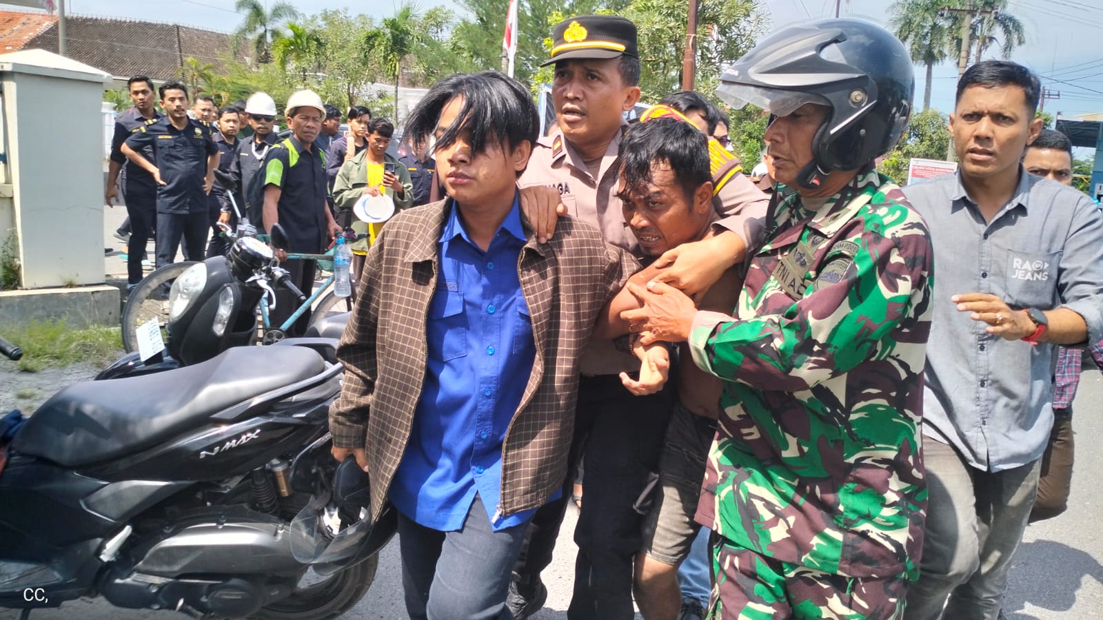 Untuk menghindari kemarahan warga/kejadian anarkis,Kasubdit Kejaksaan Bapak Ginting menghubungi Danramil 09/MB minta bantuan personil untuk amankan tersangka yang masih terjebak didalam gedung.