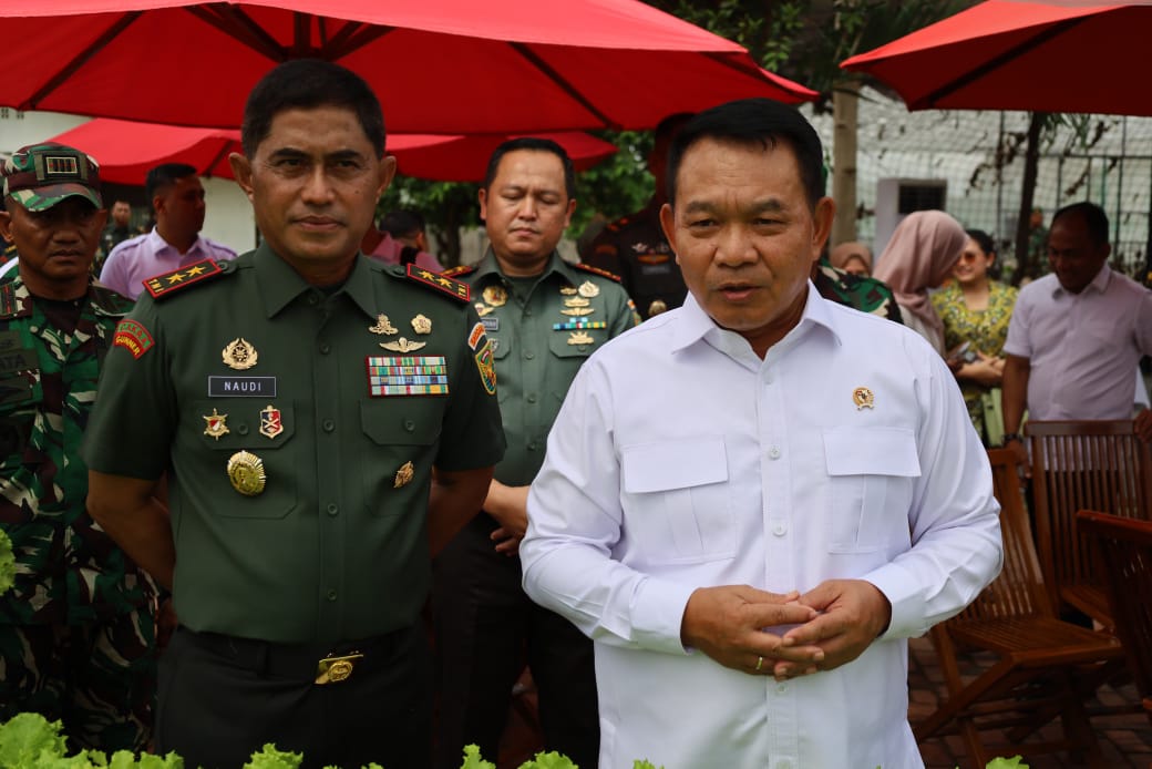 Dandim 0418/Palembang Letkol Kav Ferdiansyah,S.Sos.,M.H.I mendampingi Pangdam II/Sriwijaya Mayjen TNI M,Naudi Nurdika,SIP,MSi, Danrem 044/Gapo Brigjen TNI Adri Koesdyanto Kunjungan kerja Jenderal (Purn) Dudung Abdurrahman di Dapur Gizi dan Taman Aspirasi Kodam II Sriwijaya jalan Urip Sumoharjo Kelurahan Kalidoni Kecamatan Kalidoni Palembang,Senin 13/1/25 pagi