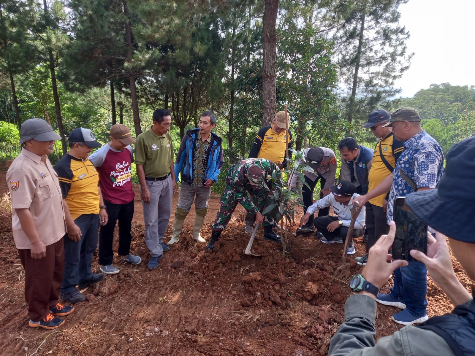 Danramil 1705/Cikijing Kapten Inf Nana Rusmana bersama unsur Muspika Cingambul menghadiri kegiatan penanaman pohon buah-buahan dalam rangka penghijauan dan pelestarian hutan.