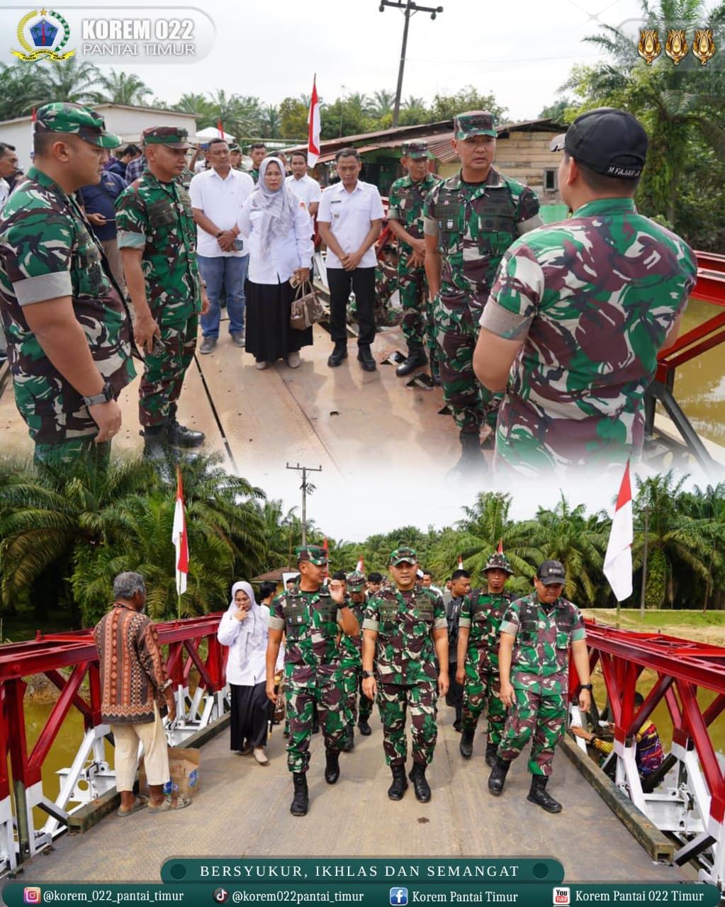Komandan Korem 022/Pantai Timur, Kolonel Inf Sandi Kamidianto, S.I.P., M.I.P., didampingi Dandim 0203/Langkat serta Kepala Seksi Teritorial Korem 022/PT, melaksanakan peninjauan Jembatan Bailey yang menghubungkan Desa Besilam Bukit Lembasa, Kecamatan Wampu, dengan Desa Banjaran Raya, Kecamatan Padang Tualang, Kabupaten Langkat, Rabu (21/01/2026).