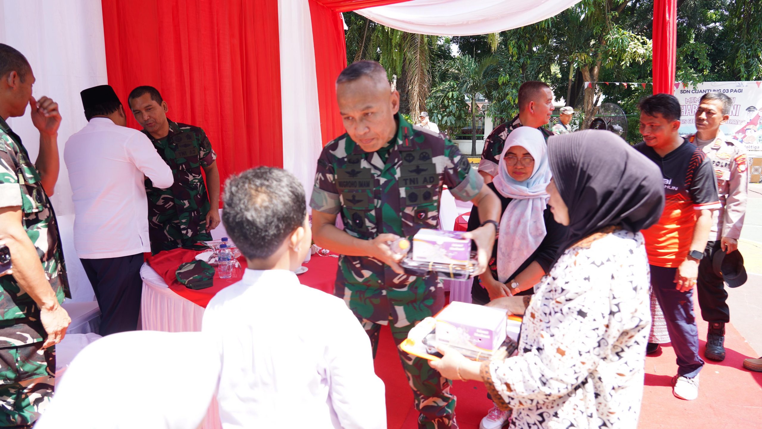 Danrem 051/Wkt dan Irdam Jaya Ikuti Vidcon Bersama Panglima TNI Launching Satuan Pelayanan Pemenuhan Gizi di SDN 03 Pagi Cijantung