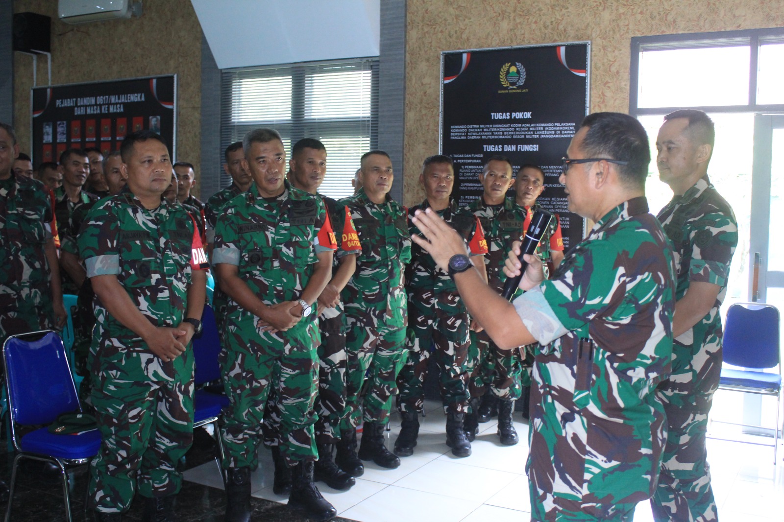 Rangkaian kegiatan diawali dengan kedatangan Danrem di Makodim 0617/Majalengka, dilanjutkan transit di ruang lobi Kodim, pelaksanaan video conference, serta pengarahan kepada seluruh prajurit dan PNS Kodim 0617/Majalengka yang digelar di Aula Sindang Kamulyan.
