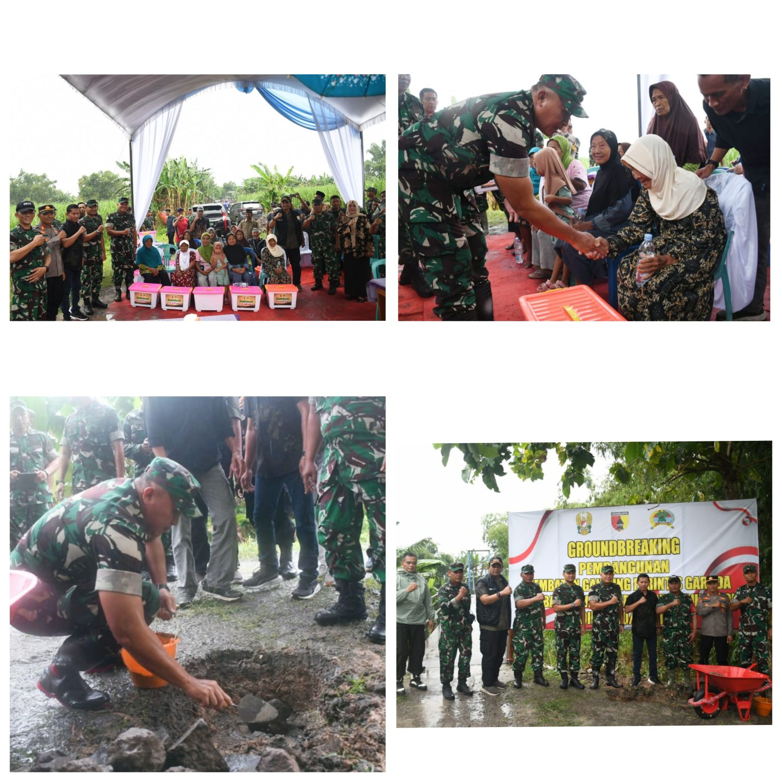Tak hanya melaksanakan peletakan batu pertama, pada kesempatan tersebut Danrem Untoro juga menunjukkan kepeduliannya dengan memberikan bantuan berupa paket sembako kepada warga sekitar.