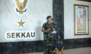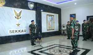 Tempat di lobi Widya Mandala Sekkau Halim Perdanakusuma Jakarta Timur, Komandan Sekkau Marsekal Pertama TNi Arief Budiman, ST, PSC(J)., menerima Laporan Korps Kenaikkan Pangkat Perwira Sekkau, yang dihadari Para Kadis, Koordostu, Dankorsis, Kapusoyu, para Kepala Manajemen, para Dosen Penuntun dan perwira staf lainnya, Senin (6/10/2025).