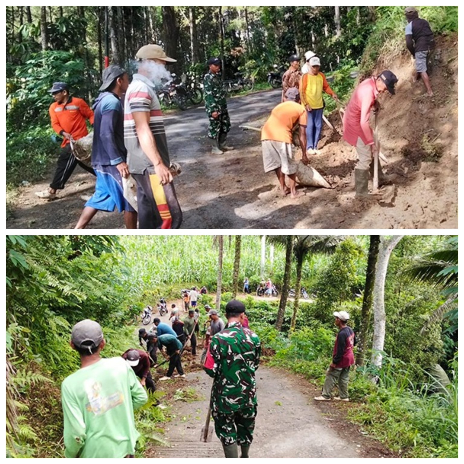 “Karya bakti ini kami lakukan bersama warga dengan sasaran pembersihan saluran air dan sisa tanah longsoran. Lokasinya berada di wilayah pegunungan, sehingga saluran air harus benar-benar bersih agar tidak menimbulkan dampak yang lebih besar,” tegas Serma Siswanto.