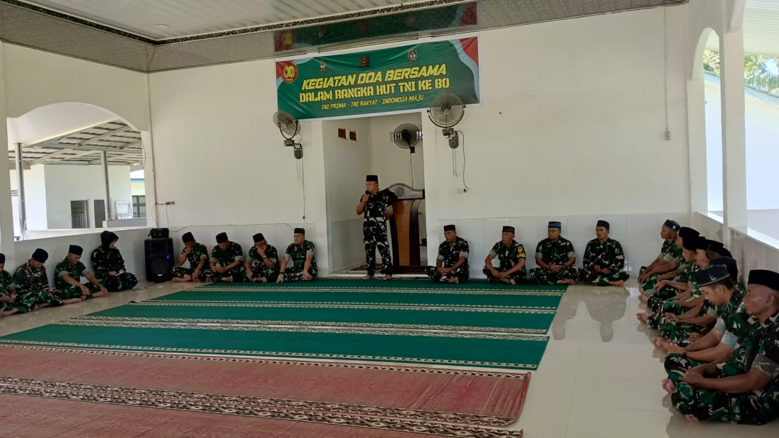Acara diawali dengan salat Dzuhur berjamaah, kemudian dilanjutkan dengan doa bersama. Dalam sambutannya, Mayor Inf Ning Kurnia menyampaikan bahwa kegiatan ini menjadi sarana pembinaan rohani sekaligus bentuk ikhtiar memohon keberkahan dan kelancaran seluruh rangkaian peringatan HUT TNI ke-80, baik di tingkat nasional maupun daerah.