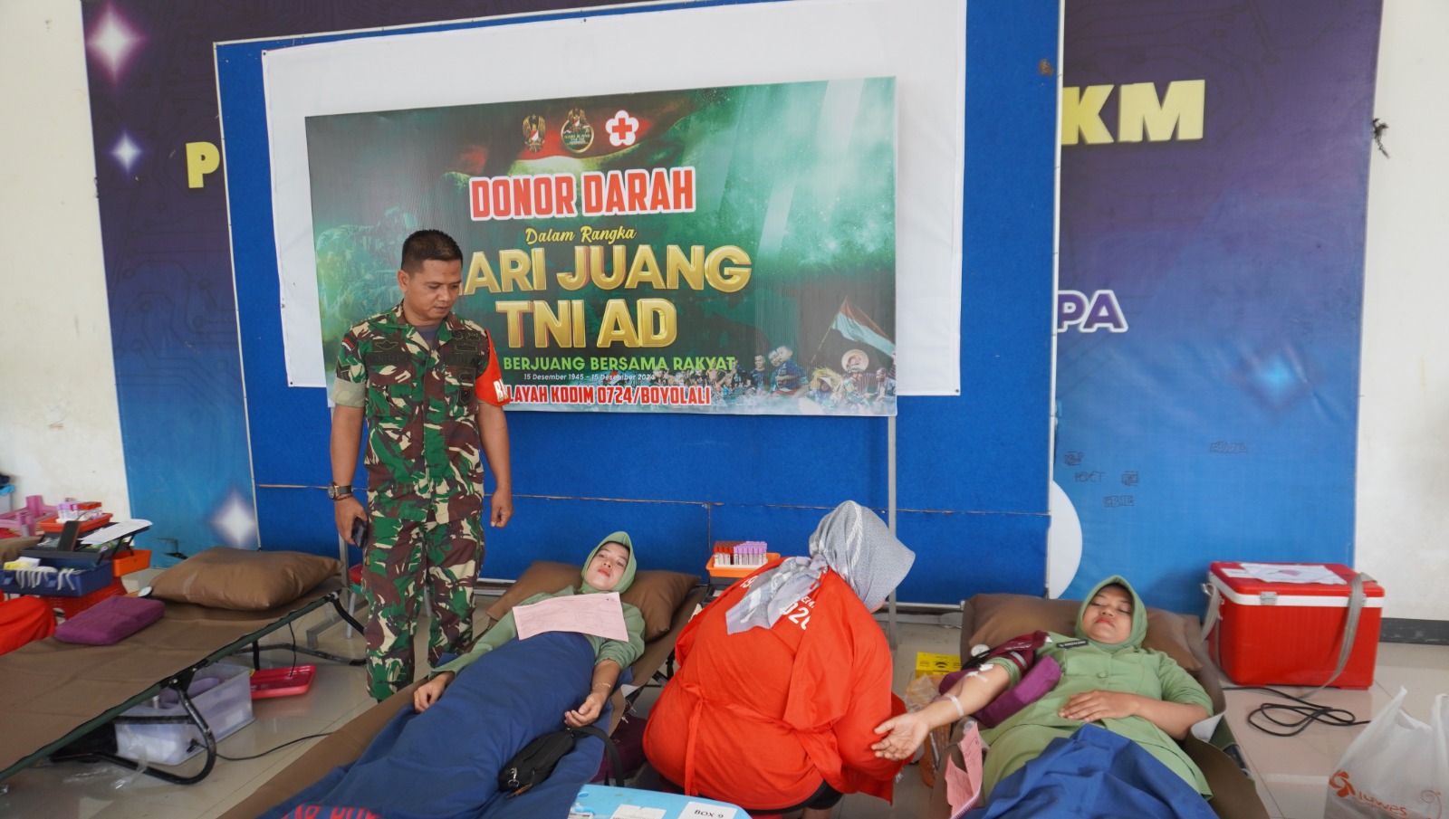 Kodim 0724/Boyolali menggelar bakti sosial donor darah dalam rangka rangkaian kegiatan peringatan Hari Juang TNI-AD, bertempat di Aula Balai Desa Tawangsari Kecamatan Teras Kabupaten Boyolali. Minggu ( 15/12/24)