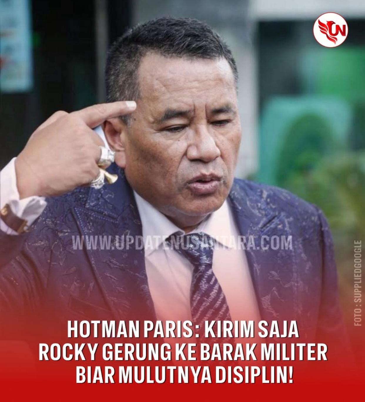 Hotman juga menambahkan sindiran tajam dengan mengatakan bahwa Rocky sebaiknya juga dikirim ke barak militer “agar tubuh dan mulutnya lebih disiplin”.