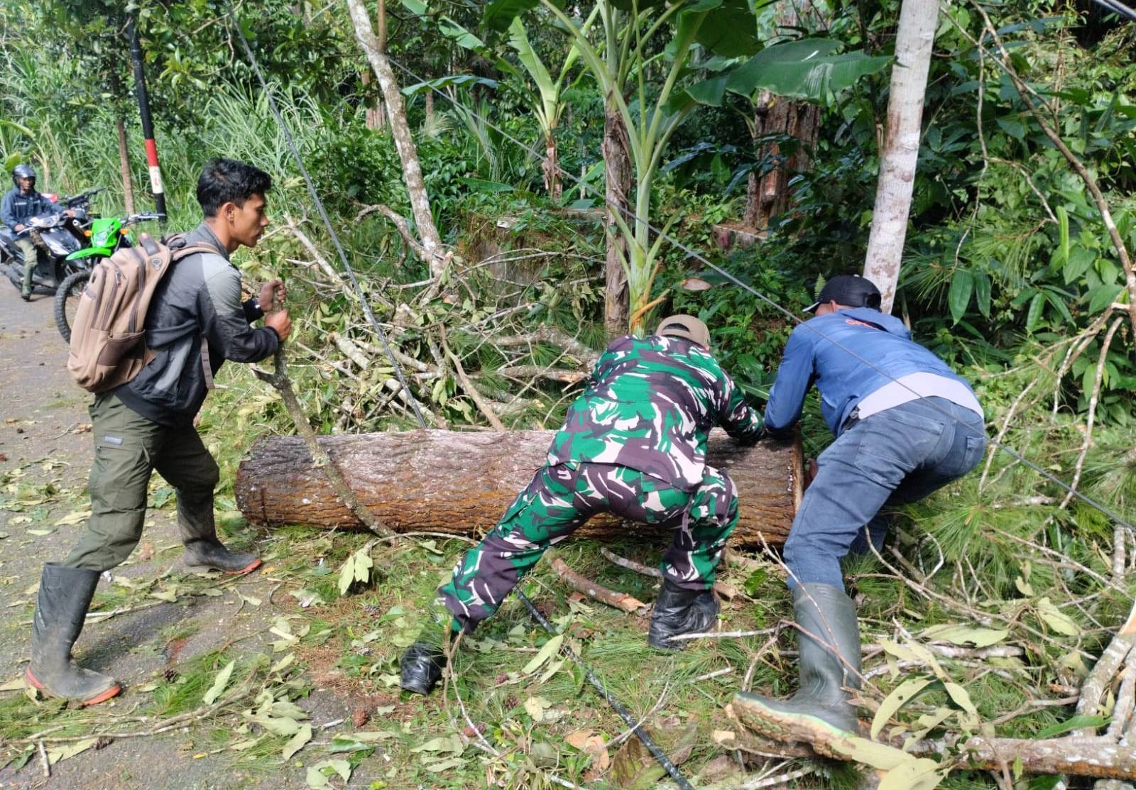 Koptu Adi juga menyampaikan imbauan kepada seluruh warga agar tetap waspada terhadap potensi bencana susulan. Ia meminta masyarakat untuk lebih berhati-hati, terutama saat melintas di jalur yang banyak ditumbuhi pepohonan besar di tengah kondisi cuaca ekstrem.