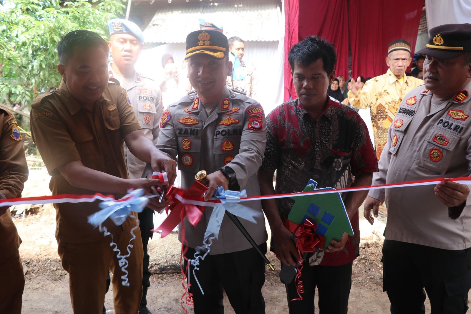 Dalam peresmian sekaligus pengguntingan pita sebagai simbol serah terima rumah pada pukul 10.30 WIB., acara berlangsung dengan penuh kehangatan dan rasa kebersamaan. Disamping bedah rumah kita juga memberikan bantuan sosial berupa sembako. Tengunya Ini adalah wujud nyata kepedulian Polri kepada masyarakat. Melalui momen HUT Bhayangkara ke-79, kami ingin menunjukkan bahwa Polri selalu hadir untuk masyarakat, tidak hanya dalam hal keamanan, tetapi juga dalam kegiatan sosial dan kemanusiaan,” ujar Kapolres Lebak.