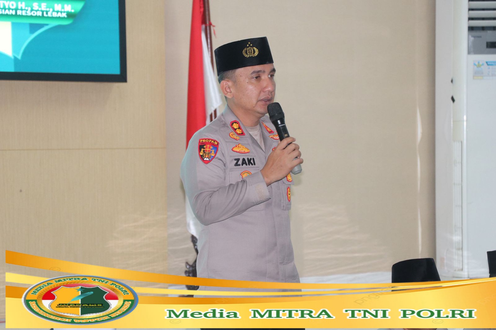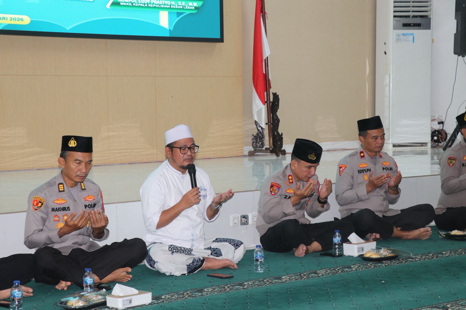 Dalam sambutannya, Kapolres Lebak AKBP Herfio Zaki, S.I.K., M.H. menyampaikan bahwa peringatan Isra Mi’raj Nabi Muhammad SAW merupakan momentum penting untuk meningkatkan kualitas keimanan dan ketakwaan seluruh personel Polri, khususnya Polres Lebak.