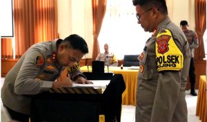 “Pakta Integritas bukan hanya sekedar diucapkan dan ditanda tangani saja, tapi lebih dari itu karna kalau tidak dijalankan dengan benar dan baik maka jabatannya akan menjadi taruhannya dan beresiko hukum”, ungkap Kapolres dalam sambutannya.