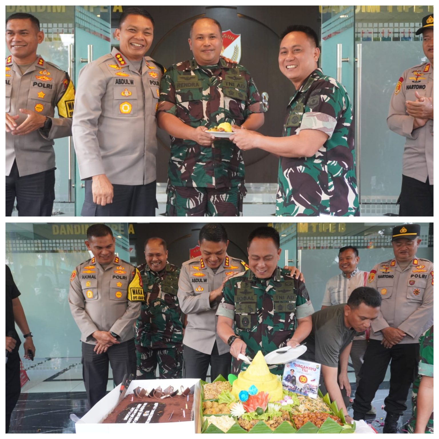 Dalam rangka memperingati Hari Ulang Tahun Tentara Nasional Indonesia (TNI) ke-80, Kapolres Metro Depok Kombes Pol Abdul Waras, S.I.K. bersama para Pejabat Utama (PJU) Polres Metro Depok dan Kapolsek jajaran se-Kota Depok mengunjungi Markas Komando (Mako) Kodim 0508/Depok untuk memberikan kejutan dan ucapan selamat ulang tahun kepada jajaran TNI, Selasa (7/10/2025).
