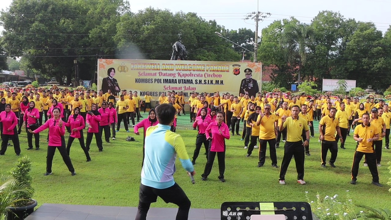 Kapolresta Cirebon Kombes Pol Imara Utama, S.H., S.I.K., M.H. memimpin langsung kegiatan Olahraga Bersama Polresta Cirebon dan Bhayangkari Cabang Kota Cirebon yang digelar pada Jumat (9/1/2026) pagi di Mapolresta Cirebon, Jalan Raden Dewi Sartika No. 1, Sumber, Kabupaten Cirebon.