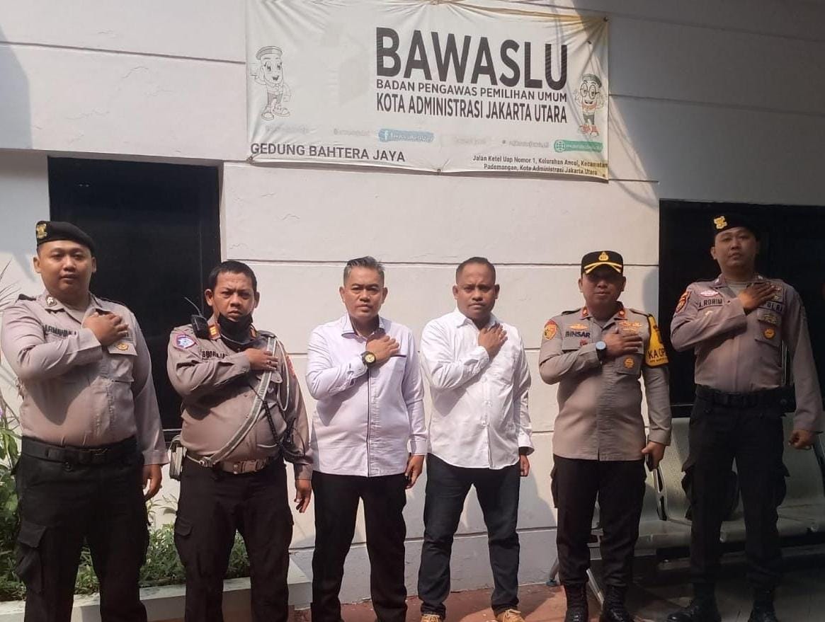 Kapolsek Pademangan, Kompol Binsar Hatorangan Sianturi, SH, SIK, MSI, melakukan pengecekan terhadap kesiapan pengamanan di kantor Bawaslu Kota Administrasi Jakarta Utara, yang terletak di Gedung Bahtera Jaya, Kelurahan Ancol, Kecamatan Pademangan, Jakarta Utara.