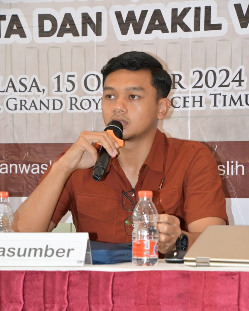 Kasat Reskrim Polres Aceh Timur, Polda Aceh, Iptu Adi Wahyu Nurhidayat, S.Tr.K.,S.I.K menghadiri sekaligus menjadi pemateri/narasumber dalam kegiatan Sosialisasi Pengawasan Pemilihan Serentak Tahun 2024 di Tingkat Kabupaten Aceh Timur Pada Pemilihan Gubernur/Wakil Gubernur dan Bupati/Wakil Bupati Serta Walikota/Wakil Walikota, Selasa, (15/10/2024).