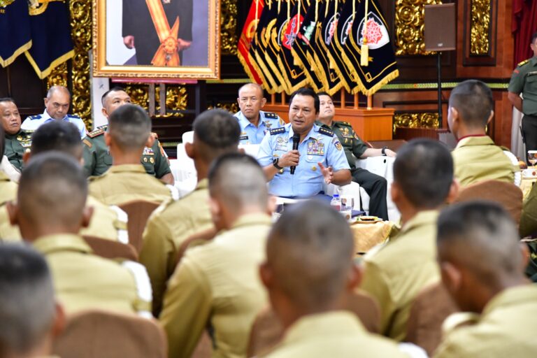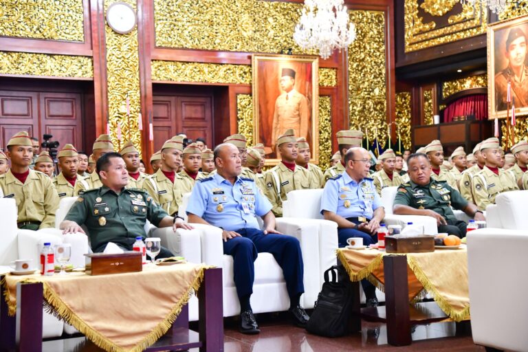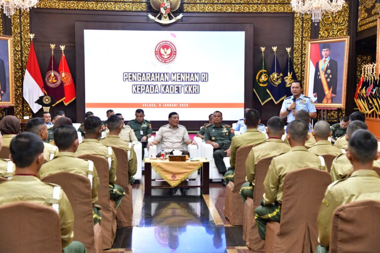Kepala Staf TNI Angkatan Udara (KASAU) Marsekal TNI M. Tonny Harjono, S.E., M.M., mendampingi Menteri Pertahanan Republik Indonesia (Menhan RI) Jenderal TNI (Purn.) Sjafrie Sjamsoeddin memberikan pembekalan dan pengarahan Korps Kadet Republik Indonesia (KKRI) di Aula Bhinneka Tunggal Ika Kementerian Pertahanan, Jakarta, Selasa (06/01/2026).