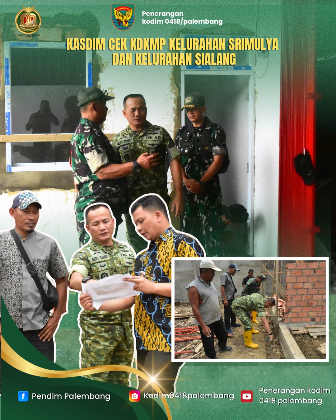 Kasdim 0418/Palembang Letkol Inf Dery Septriandi, ST., M.M., M.Han meninjau langsung pembangunan Koperasi Desa/Kelurahan Merah Putih (KDKMP) di wilayah Kecamatan Sako, Jumat (23/1/2026).