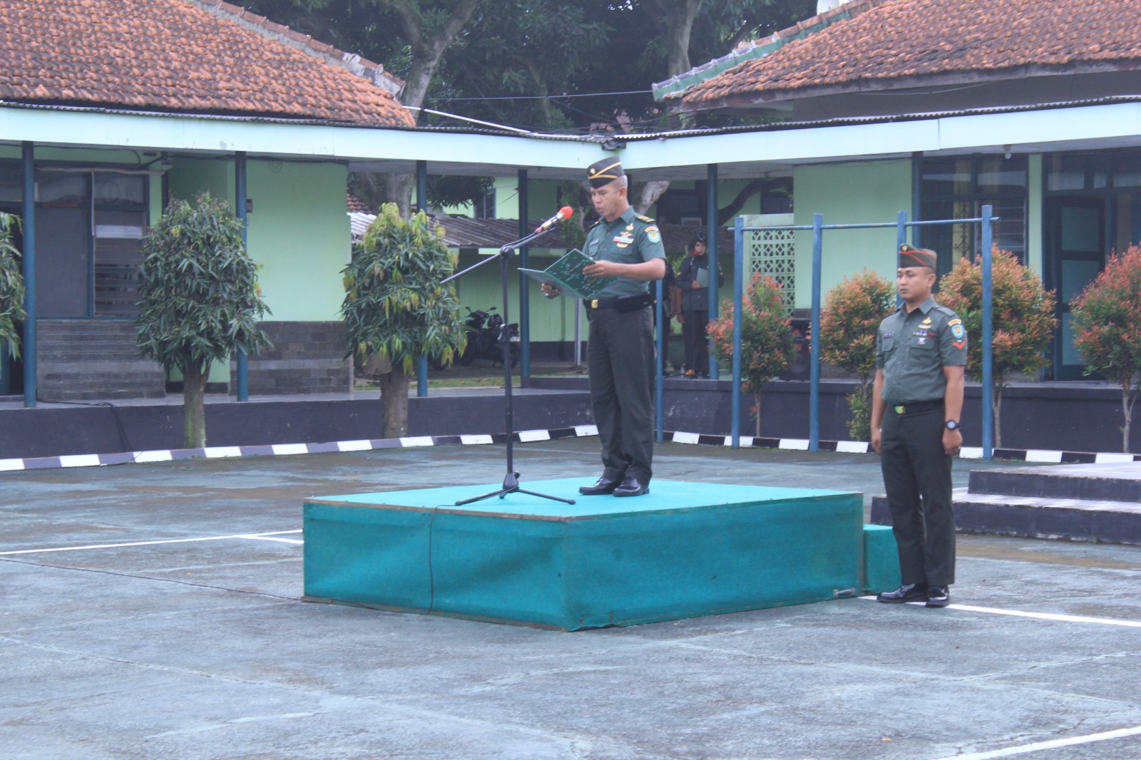 Kepala Staf Kodim (Kasdim) 0617/Majalengka Mayor Inf Sugianto, memimpin langsung pelaksanaan upacara bendera yang berlangsung khidmat di Lapangan Makodim 0617/Majalengka, Jalan KH Abdul Halim No. 403, Kelurahan Tonjong, Kabupaten Majalengka, Senin (12/1/2026).