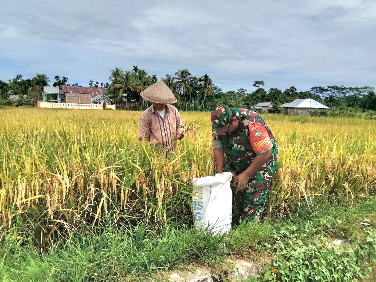 Babinsa Koramil 21/Paya Bakong, Kopka Yasir Arafat, melaksanakan kegiatan membantu petani di Desa Blang Dalam, Kecamatan Paya Bakong, Kabupaten Aceh Utara, Selasa (30/9/2025). Kehadiran Babinsa di tengah sawah tersebut memberikan semangat baru bagi warga yang sedang memanen padi dengan menggunakan alat ketam padi.