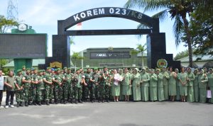 Acara pelepasan ini dihadiri oleh jajaran pimpinan Korem 023/KS, termasuk Kasirem, Dansat, para Kabalakrem, serta pengurus Persit Rem 023/KS.