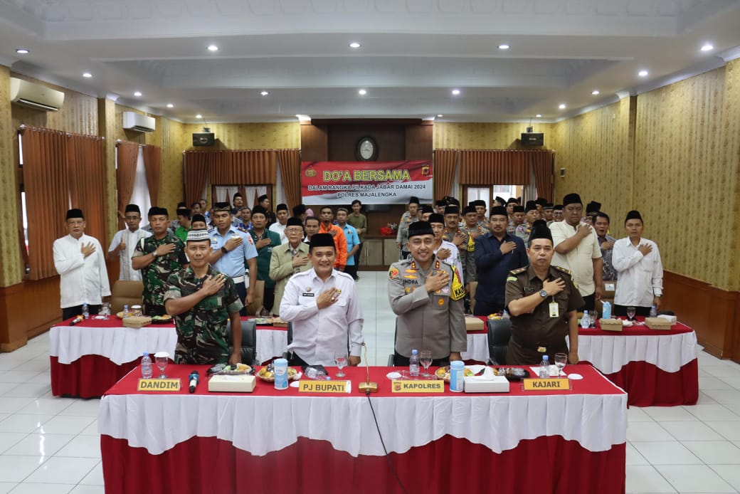 Majalengka, melalui Zoom Meeting Pimpinan Kapolda Jabar, Polres Majalengka Polda Jabar menggelar doa bersama dalam rangka Pilkada Damai tahun 2024. Acara ini digelar di aula Kanya Wasistha Polres Majalengka, Rabu (20/11/2024).