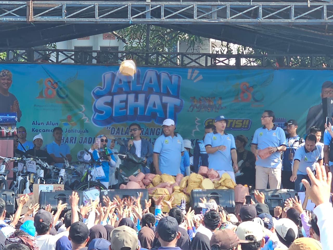 Kegiatan Jalan Santai dengan hadiah utama sepeda motor serta puluhan hadiah menarik lainya secara resmi dilepas oleh Bupati Majalengka H. Eman Suherman, didampingi Wakil Bupati Dena Muhammad Ramdan, Sekretaris Daerah Aeron Randi, Ketua TP – PKK Kabupaten Majalengka serta jajaran perangkat daerah dan unsur terkait lainnya.