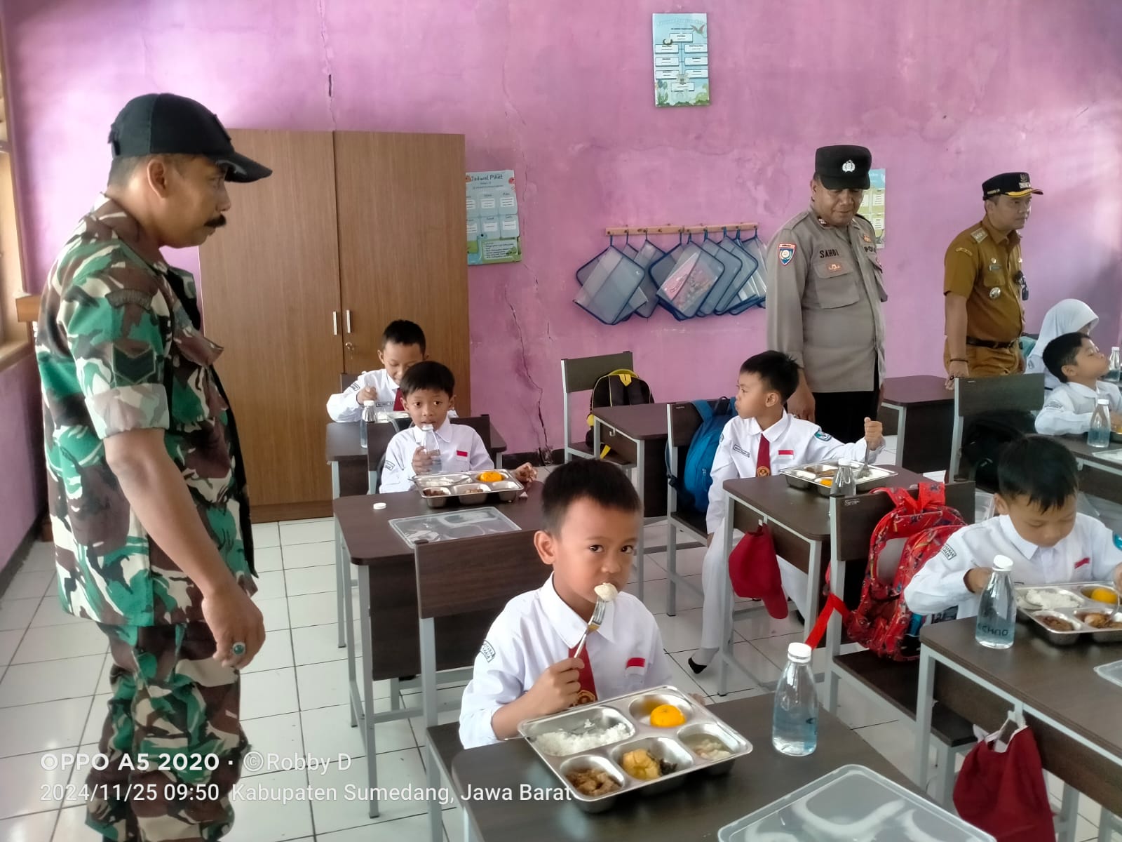 Bertempat di SD Negeri Pamoyanan Desa Cipicung Kecamatan Jatigede, telah dilaksanakan Kegiatan monitoring makan bergizi gratis oleh Serka Supingi Babinsa Cipicung beserta 1 orang anggota Koramil 1013/Jatigede dan anggota Polsek Jatigede, di Sekolah Dasar Negeri Pamoyanan Desa Cipicung Kecamatan Jatigede Kabupaten Sumedang. Dalam Rangka Pengenalan Program Pemerintah RI Makan Siang Bergizi gratis. Senin, 25/11/2024