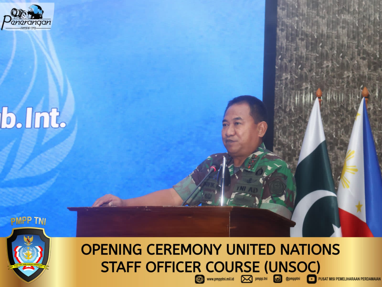 Komandan PMPP TNI Brigjen TNI Taufik Budi Santoso, S.Hub.Int., secara resmi membuka United Nations Staff Officer Course (UNSOC) 2025 di auditorium PMPP TNI, Sentul, Bogor, Jawa Barat, pada Senin (13/01/2025).