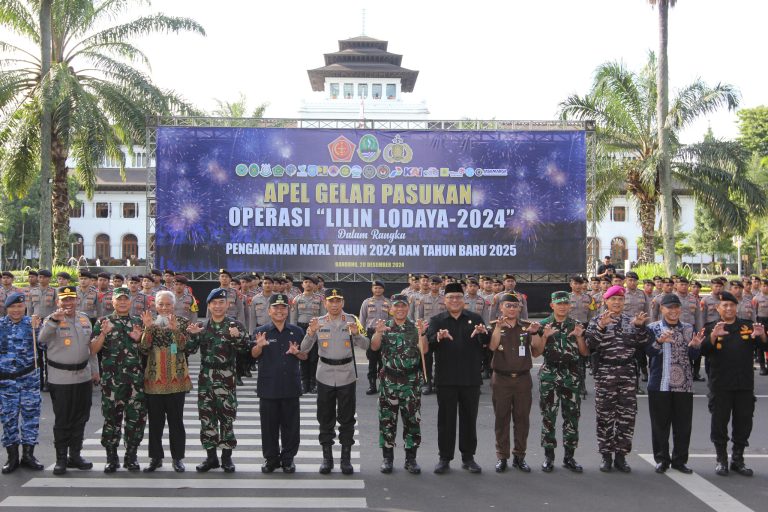 Pangdam III/Siliwangi, Mayjen TNI Dadang Arif Abdurahman, S.E., M.Si., CHRMP., bersama Kapolda Jawa Barat Irjen Pol Dr. Akhmad Wiyagus, S.IK., M.Si., MM., dan Sekda Provinsi Jawa Barat Dr. Drs. Herman Suryatman, M.Si., memimpin Apel Gelar Pasukan Operasi Lilin – Lodaya 2024 dalam rangka Persiapan Pelaksanaan Pengamanan Natal 2024 dan Tahun Baru 2025 yang digelar di Jl. Diponegoro, Kota Bandung, Jum’at (20/12/2024).