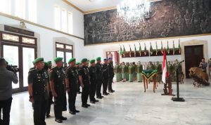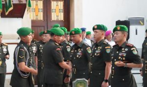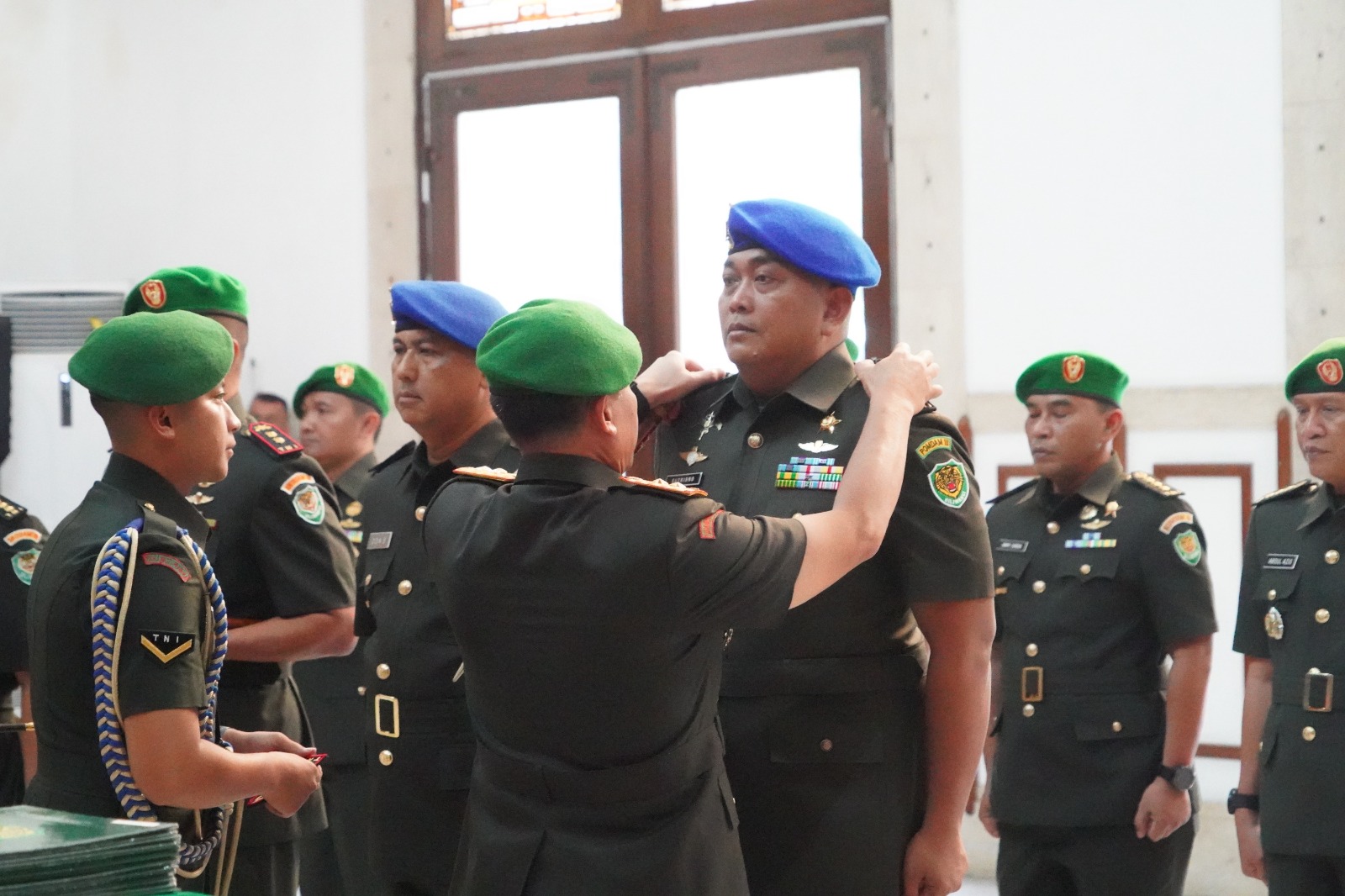 Pangdam III/Siliwangi, Mayjen TNI Dadang Arif Abdurahman, S.E., M.Si., CHRMP., memimpin acara Tradisi dan Serah Terima Jabatan (Sertijab) sejumlah pejabat di jajaran Kodam III/Slw yang berlangsung di Ruang Silihwangi, Kodam III/Slw, Sabtu (05/07/2025).