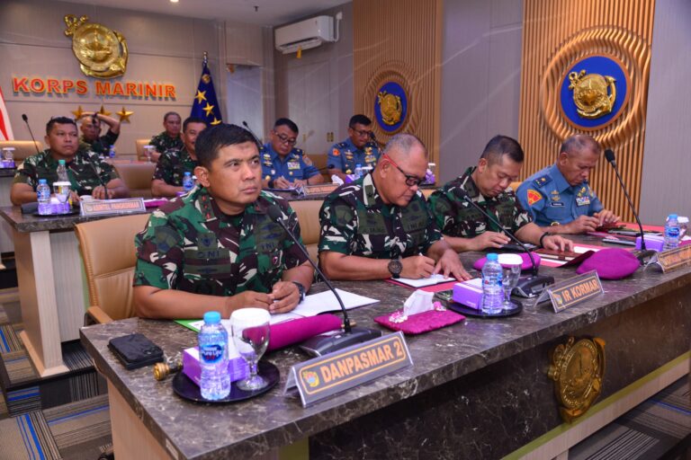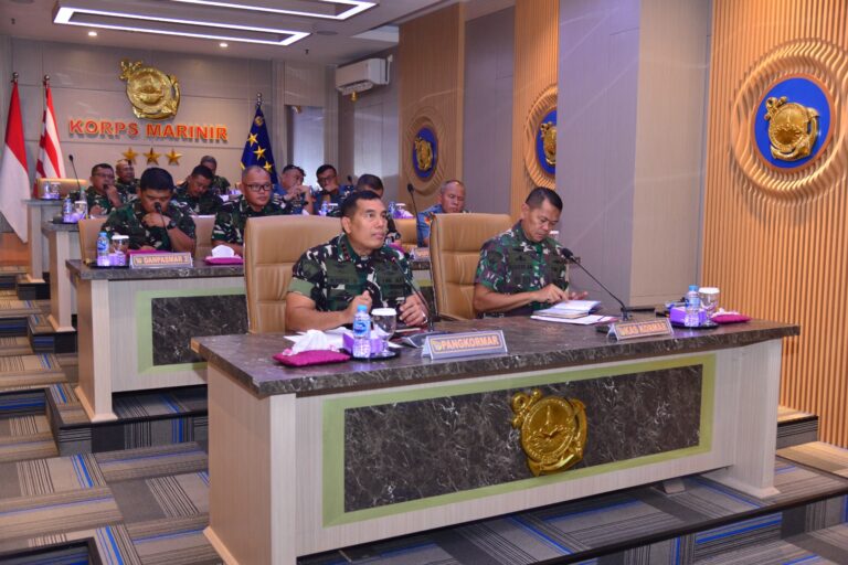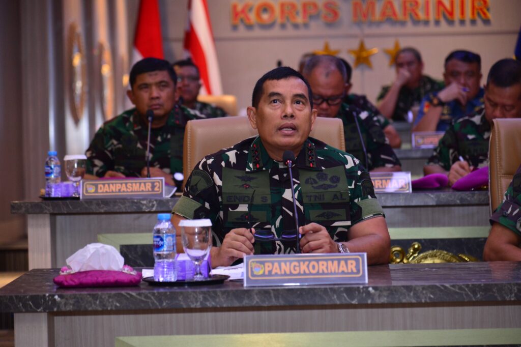 Panglima Korps Marinir (Pangkormar) Letnan Jenderal TNI (Mar) Dr. Endi Supardi, S.E., M.M., M.Tr.Opsla., CHRMP., CRMP., memberikan pengarahan kepada seluruh Komandan Satuan jajaran Korps Marinir serta para Dansatgas Dalam dan Luar Negeri secara Video Conference dari Ruang Vicon Puskodal Kormar, Gedung Agoes Subekti, Markas Komando Korps Marinir, Jalan Prajurit KKO Usman dan Harun No.40 Kwitang, Jakarta Pusat, Selasa (06/01/2026).
