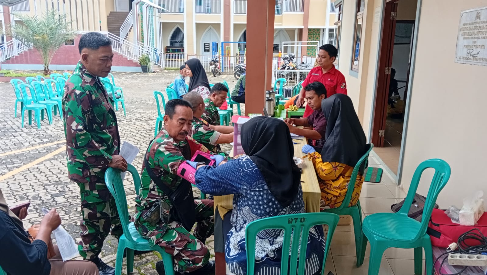 Babinsa Kodim 0412/LU menghadiri Acara Bakti sosial Donor Darah Majelis Tafsir Al Qur’an (MTA) Perwakilan Lampung Utara. Di halaman MTA Perwakilan Lampung Utara Jln. Tjoekoel Soebroto No. 93 B. Kelurahan Kelapa Tujuh, Kecamatan Kotabumi Selatan Kab. Lampung Utara. Minggu,(18/01/2026).