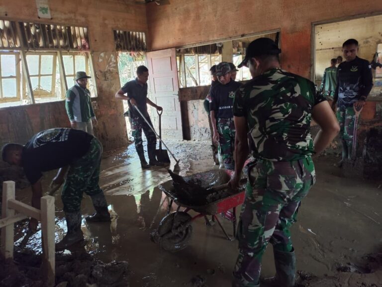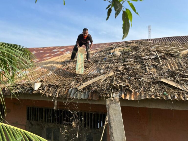 Selain ruang kelas dan halaman sekolah, prajurit juga membersihkan atap bangunan dari tumpukan ranting dan kayu yang terbawa arus banjir. Langkah ini dilakukan untuk memastikan lingkungan sekolah kembali aman dan layak digunakan.