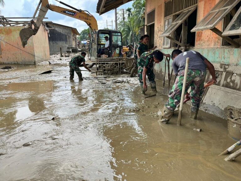 TNI Angkatan Darat terus mendukung percepatan pemulihan pascabencana banjir bandang dan tanah longsor di Kabupaten Aceh Tamiang, salah satunya melalui pembersihan fasilitas pendidikan. Ratusan prajurit TNI AD dari Satgas Gulbencal Yonif 115/Macan Leuser melaksanakan karya bakti membersihkan SD Negeri 04 Kuala Simpang, Minggu (04/01/2026), agar aktivitas belajar mengajar dapat segera kembali berjalan.