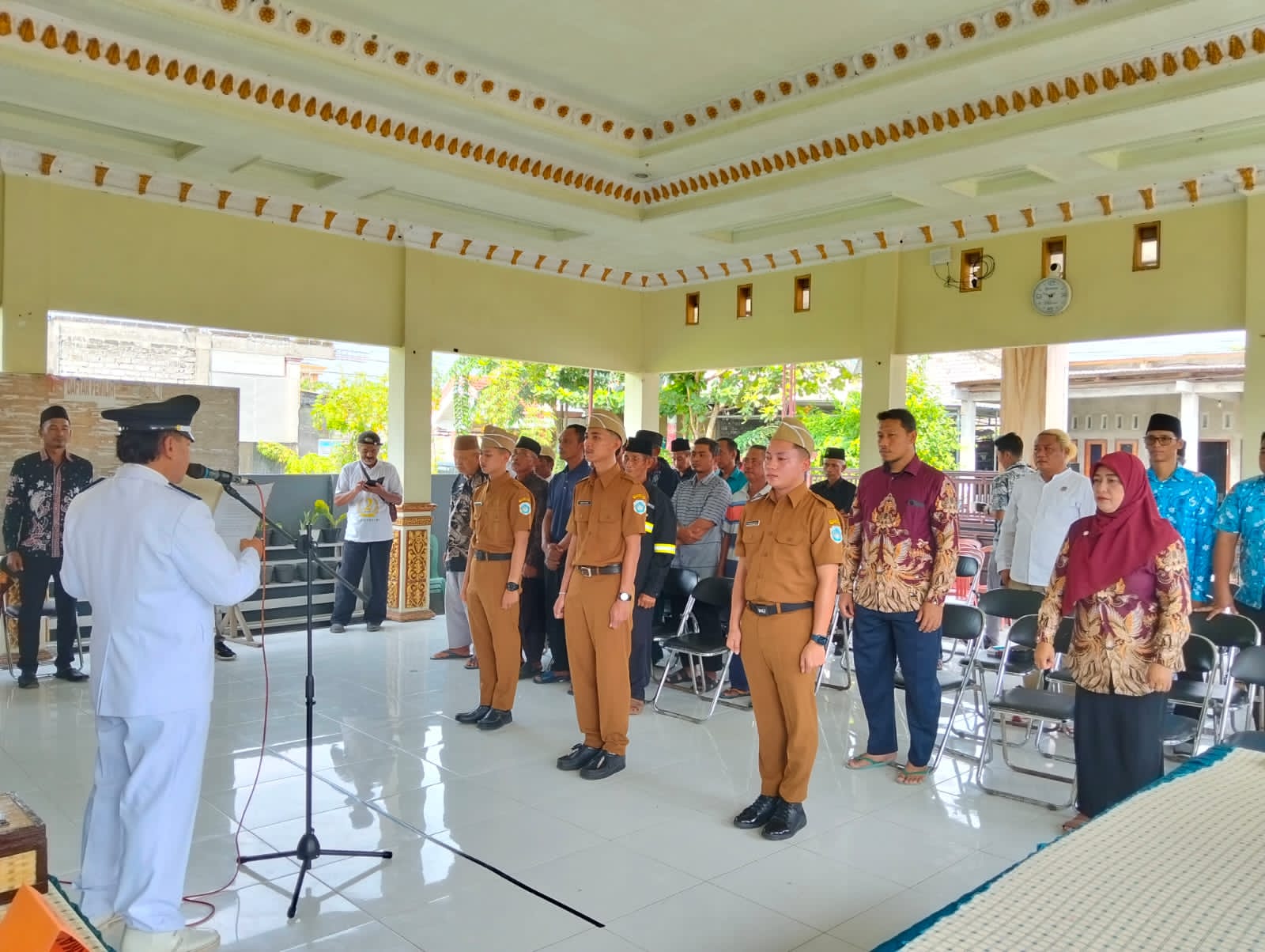 Kepala desa jugo H.Manan resmi melantik dan mengambil sumpah tiga perangkat desa yang lolos seleksi penjaringan, Lamongan 24/12/2025.