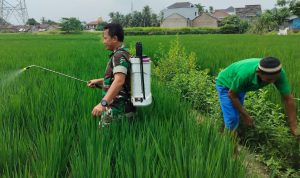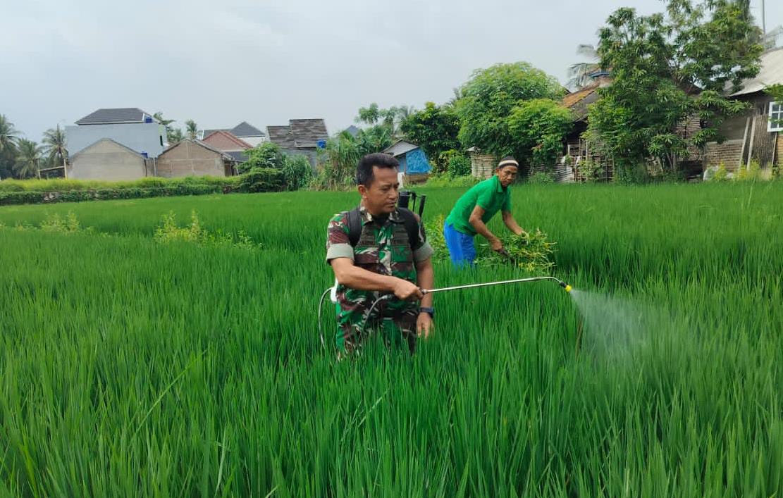 Pelda Sujarno Babinsa Koramil 0602-06/Kramatwatu Membantu Petani Meningkatkan Produktivitas Padi