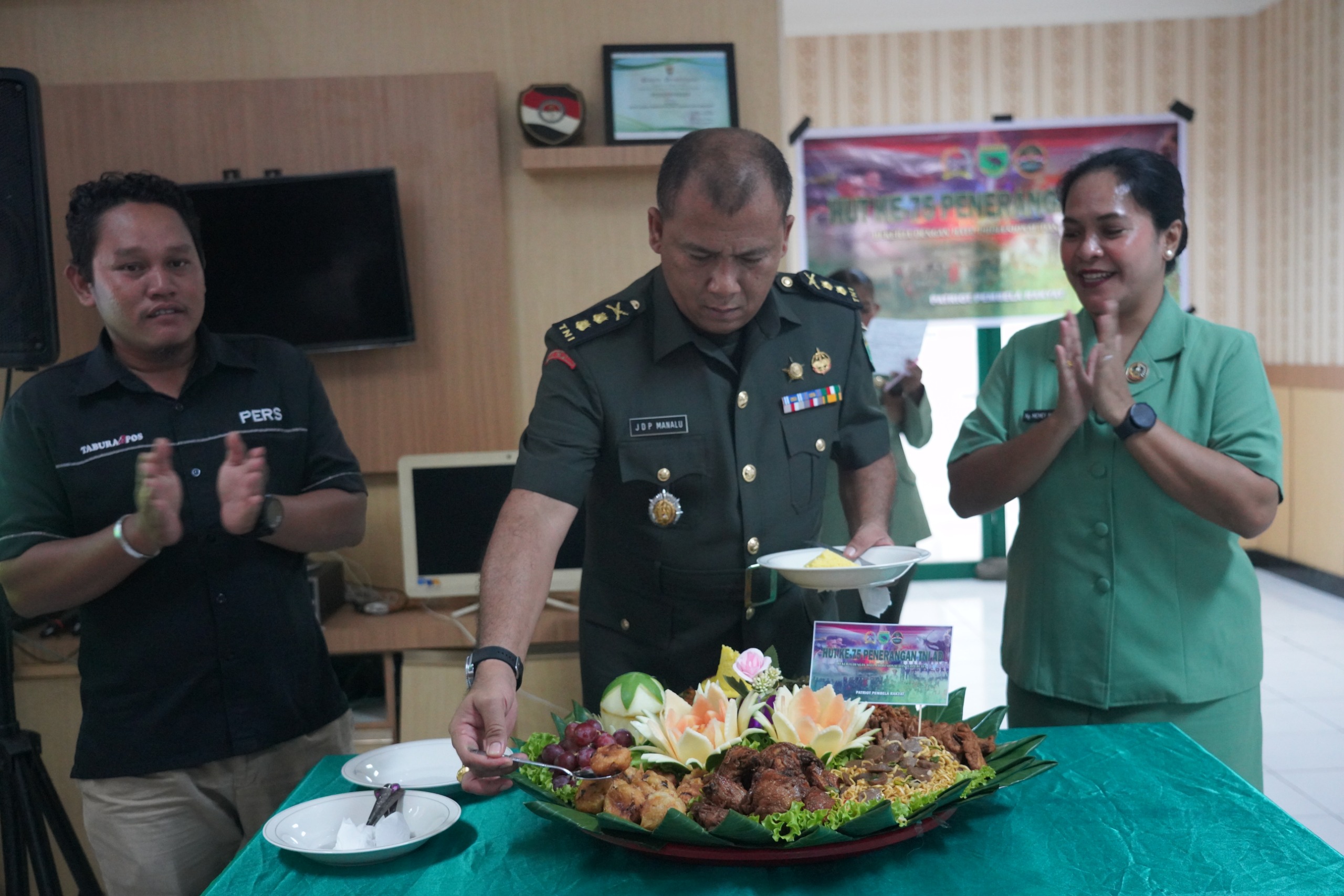 Syukuran ditandai dengan pemotongan tumpeng oleh Kapendam XVIII/Kasuari yang diserahkan kepada perwakilan Insan Media dan prajurit termuda, sebagai simbol kebersamaan, soliditas, dan regenerasi.
