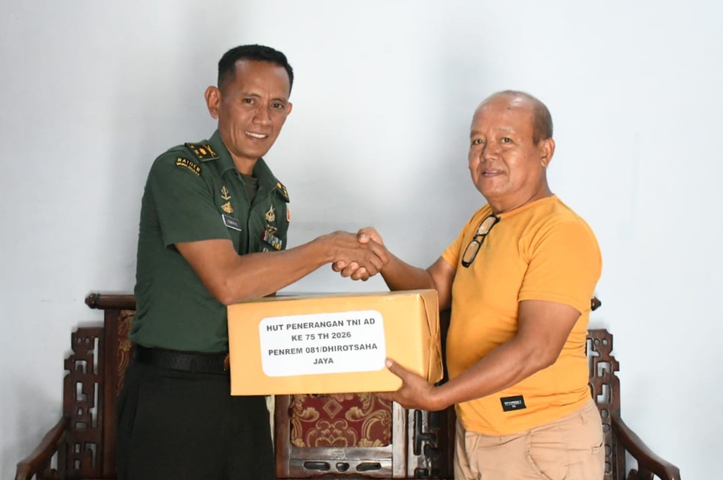 Kapenrem 081/DSJ Mayor Inf Ismail bersama sejumlah anggotanya melaksanakan anjangsana ke kediaman Syahlan Rosidi dan Irda Catri Sapto di Desa Winong, Kecamatan Maospati, Kabupaten Magetan, Selasa (20/1/2026). Keduanya mantan Aparatur Sipil Negara (ASN) di Penrem 081/DSJ yang kini telah purnatugas.