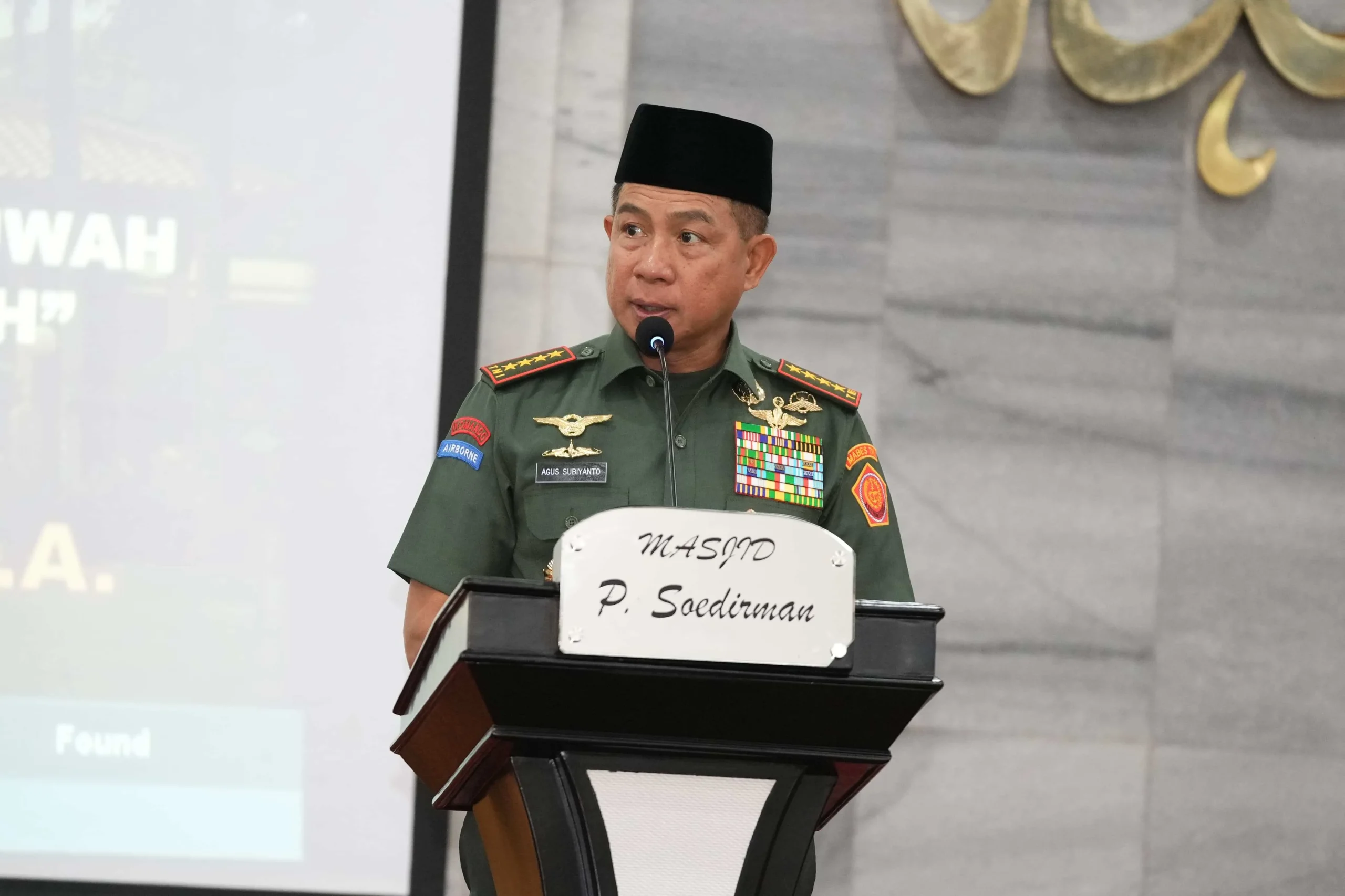 Panglima TNI Jenderal TNI Agus Subiyanto menghadiri acara ceramah rohani Islam dalam rangka memperingati Tahun Baru Islam 1447 Hijriah di Masjid Jenderal Soedirman, Mabes TNI, Cilangkap, Jakarta Timur, Senin (30/6/2025).